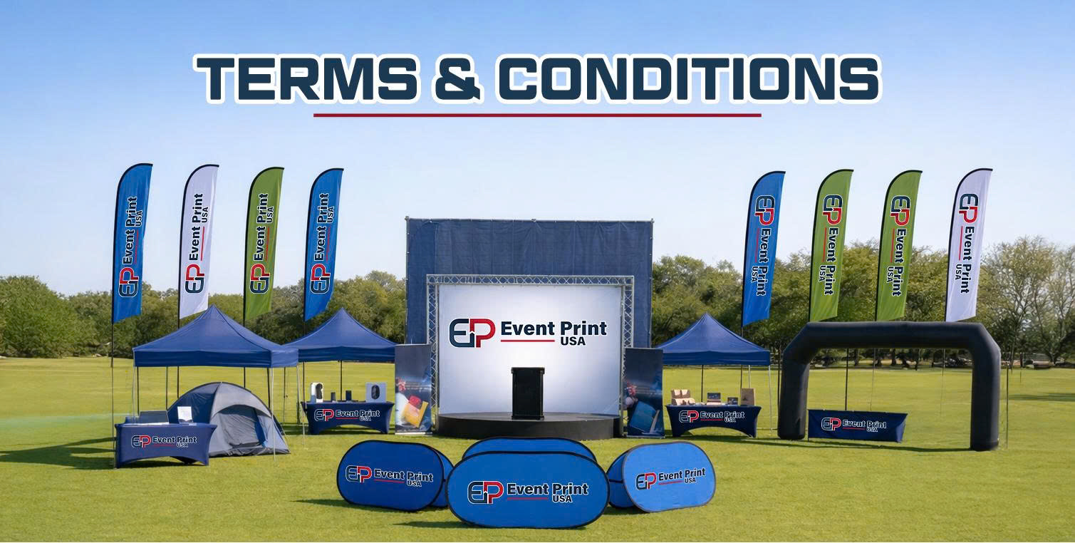 EVENT PRINTING has the sole description to provide the terms of payment. Unless otherwise agreed, payment must first be received by EVENT PRINTING prior to the acceptance of an order. Unless credit term has been agreed upon, payment for the products shall be made by credit card, debit card, PayPal, or bank transfer. Invoices are due and payable within the time period noted on your invoice, measured from the date of the invoice. Unless otherwise noted, all invoices are required to be paid to start production on custom products. Any order may be invoiced separately. EVENT PRINTING has all the discretion to cancel or deny orders. EVENT PRINTING is not responsible for pricing, typographical, or other errors in any offer by EVENT PRINTING and reserves the right to cancel any orders arising from such errors. For all but consumer purchases, EVENT PRINTING reserves the right to charge you a late penalty charge of 1% per month applied against undisputed overdue amounts or the maximum rate permitted by law whichever is less. Every 30 days thereafter, you will continue to be charged an additional late penalty charge. Until such time that late payment orders are paid, products may be delayed in delivery with no notice to customer.